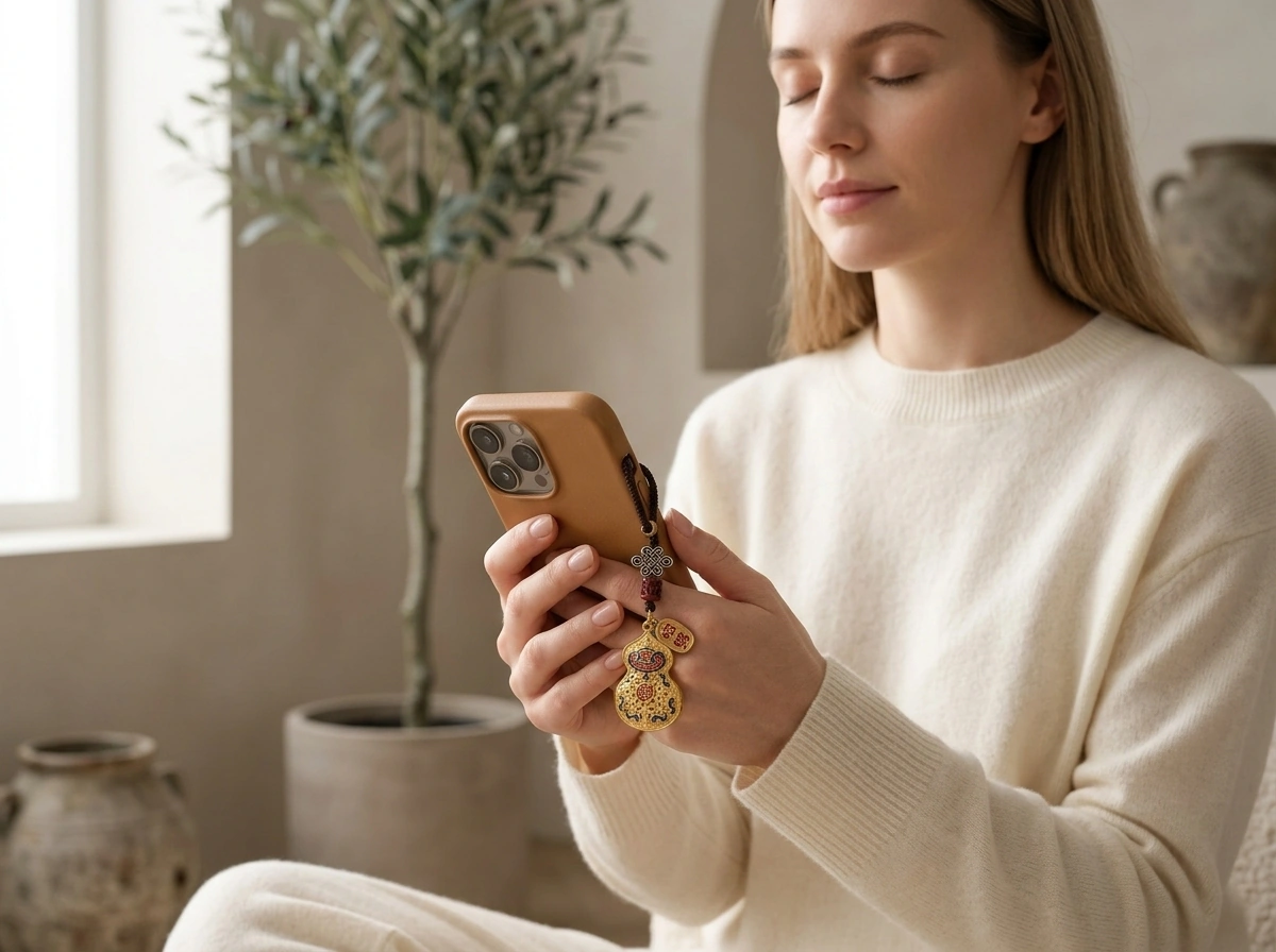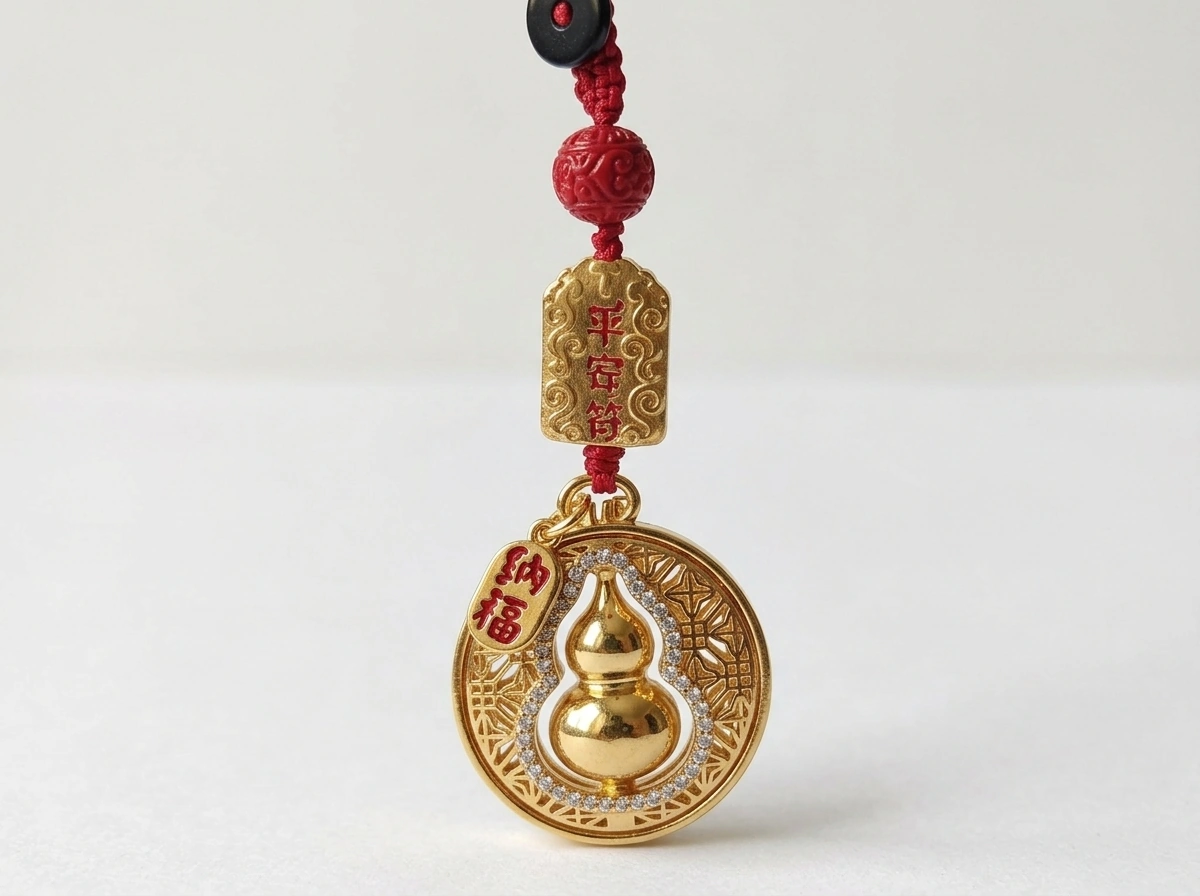 In Chinese, “Hulu” (gourd) sounds like “Fu Lu” – which means blessings, prosperity, and wealth. That’s why the gourd is a powerful lucky charm for money and good fortune.Miniature gourds are worn as pendants, phone charms, or keychains. People place them in wealth corners of their home or car.