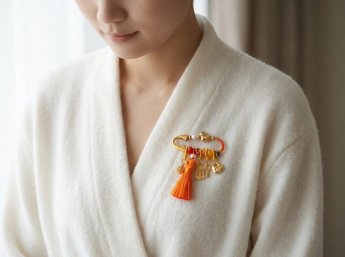 An orange decorative pin that helps your wishes come true – bringing positive energy and making your dreams happen. Perfect for night shifts or late-night outings.Wear it when you need your dreams to manifest.