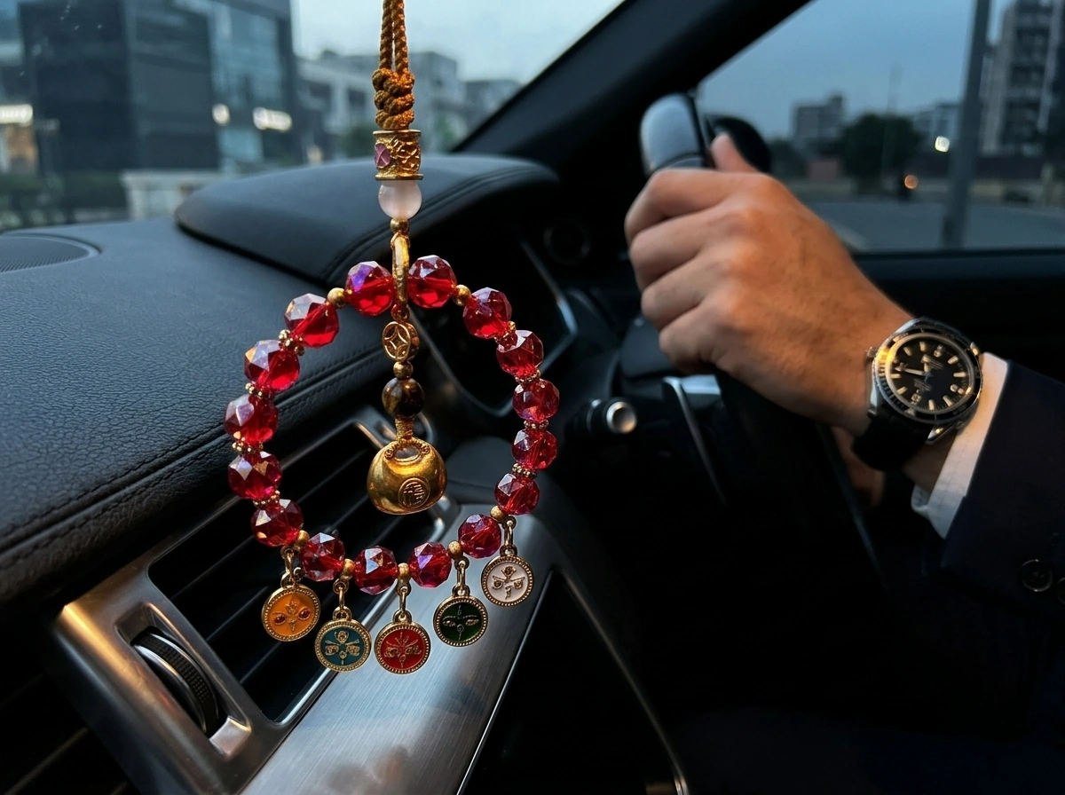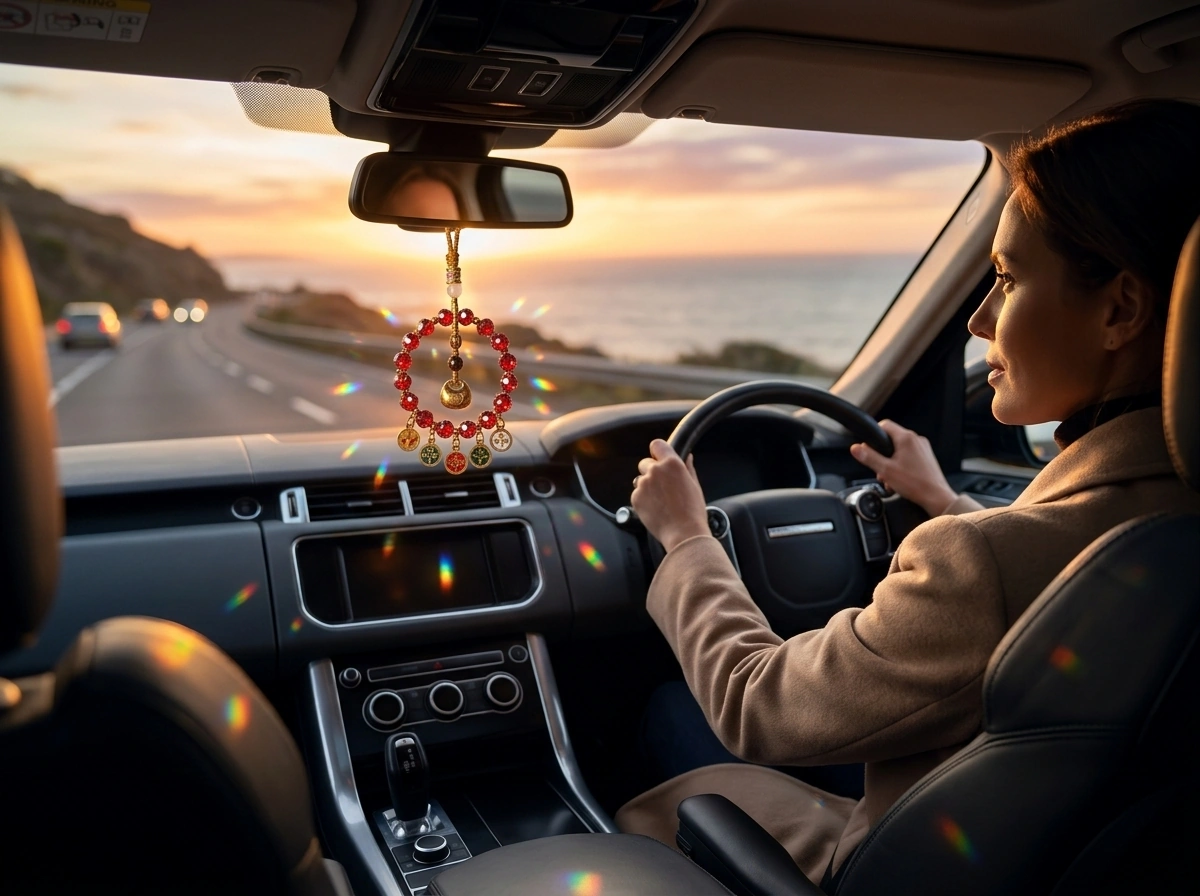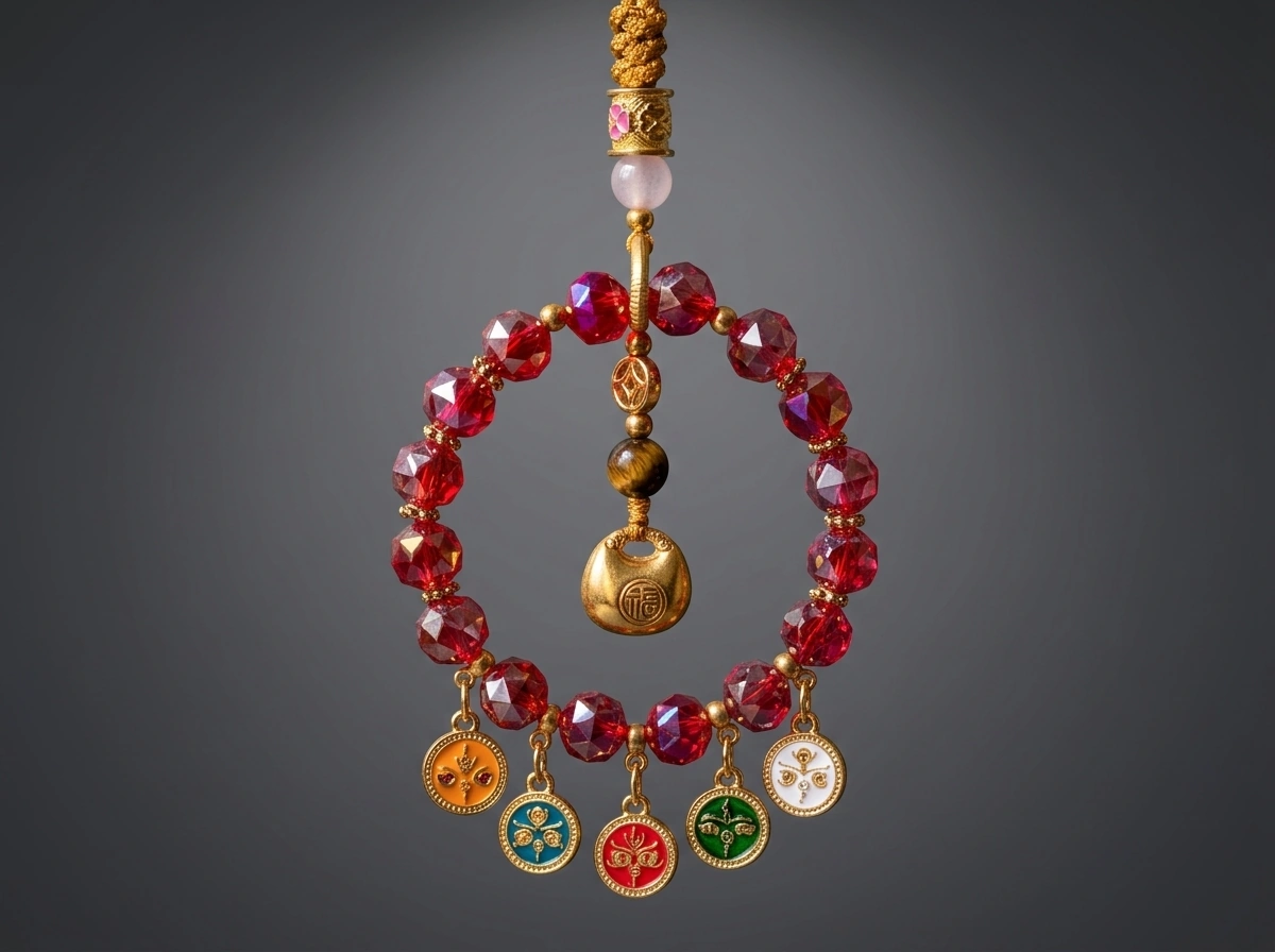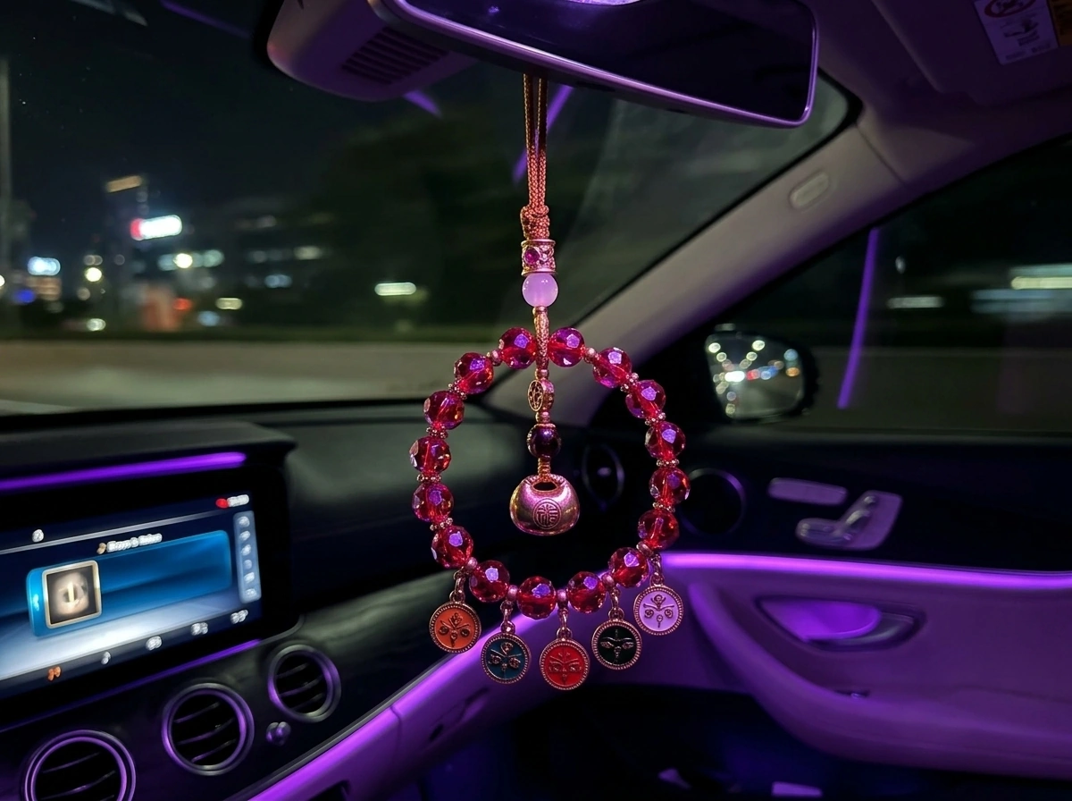 Red – the color of good luck and happiness in Chinese culture. Lucky Bag (Fu Dai) symbolizes wealth and blessings. Made with natural red crystal. Hang in your car to attract good fortune and safe travels.