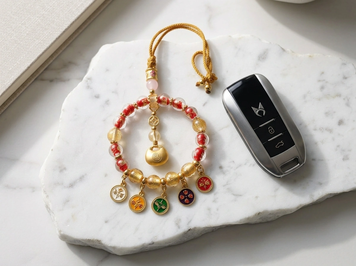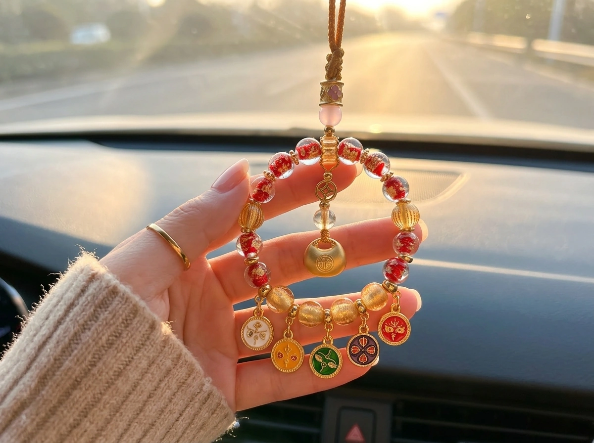 Red Gold Foil Glazed Glass Lucky Bag – Car Charm