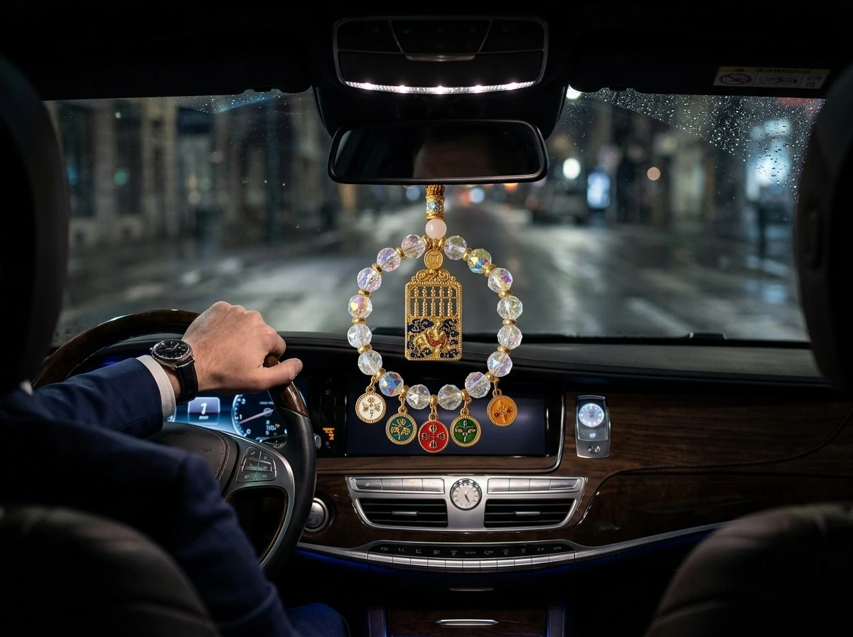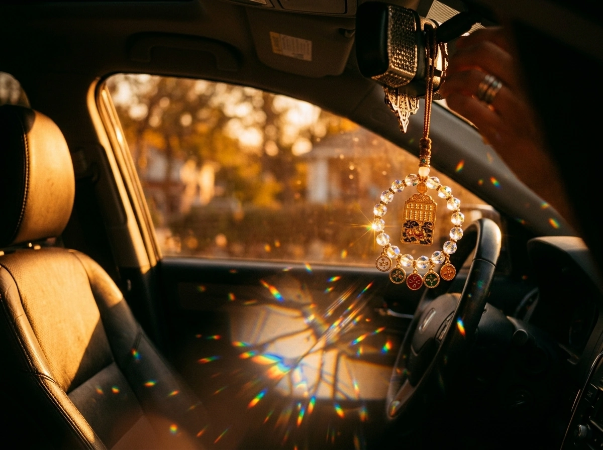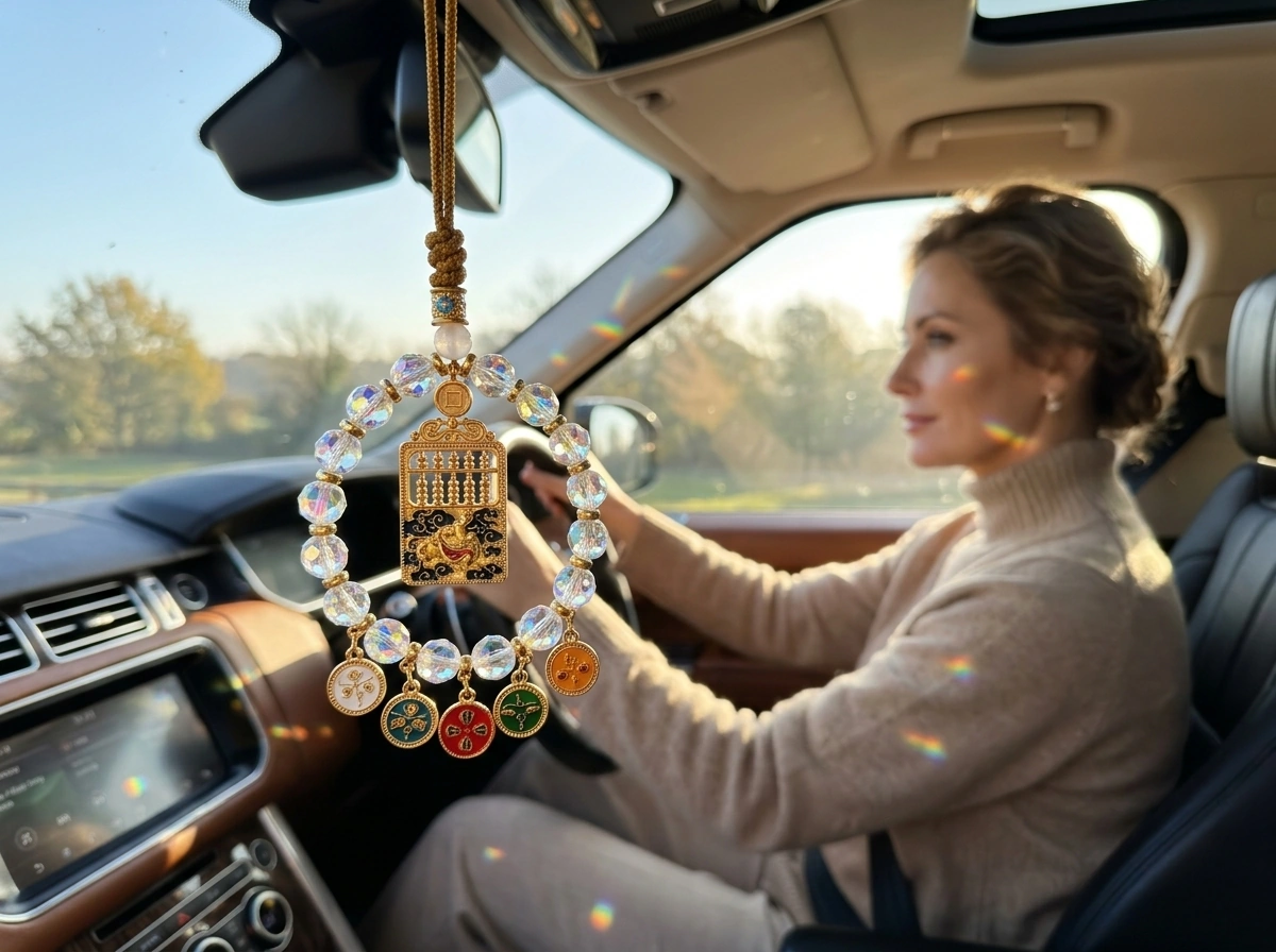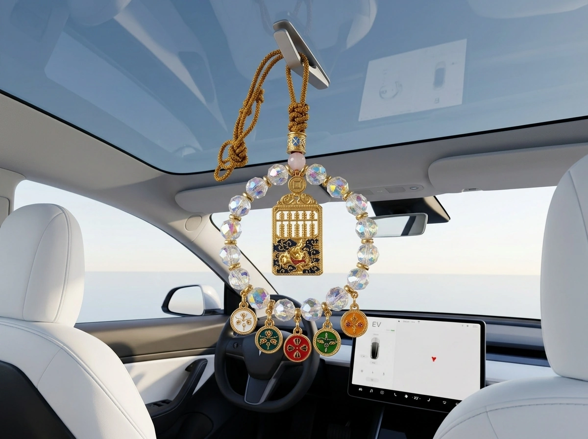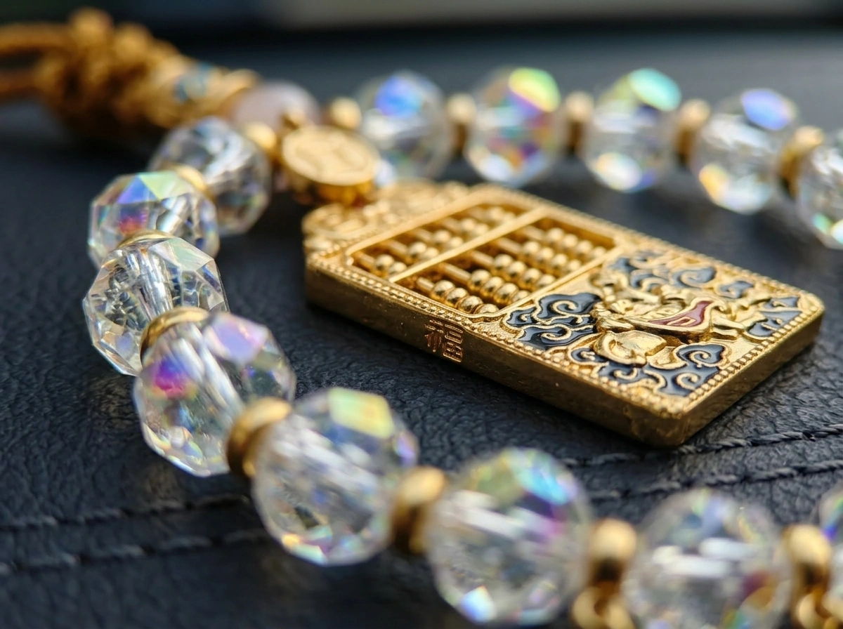 “Fu” means good fortune and happiness. The abacus is an ancient calculating tool – here it symbolizes wealth, wisdom, and counting blessings. Made with iridescent crystal that shimmers in rainbow colors. Hang in your car for luck, prosperity, and clear thinking on the road.
