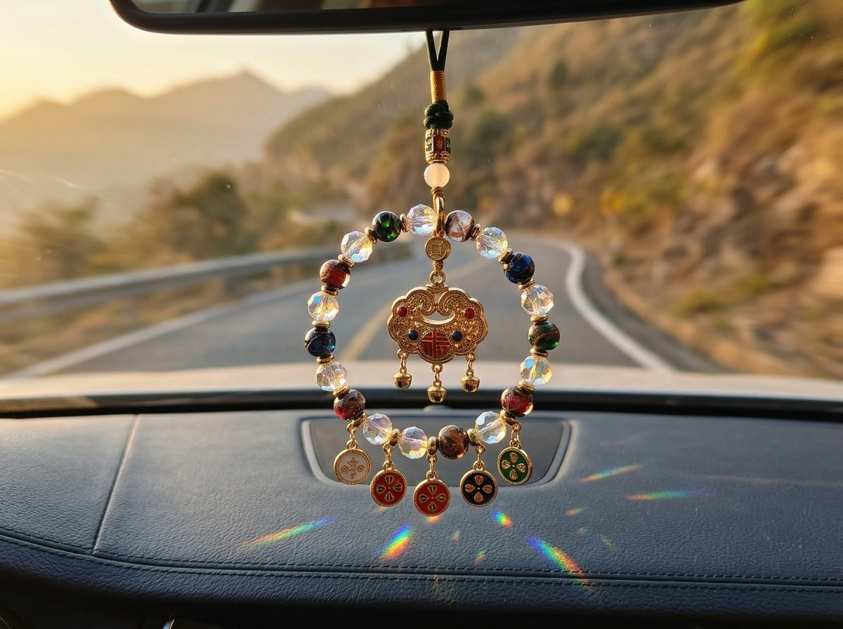 Incense Ash Crystal Glass “Blessing Lock” – Rearview Mirror Charm