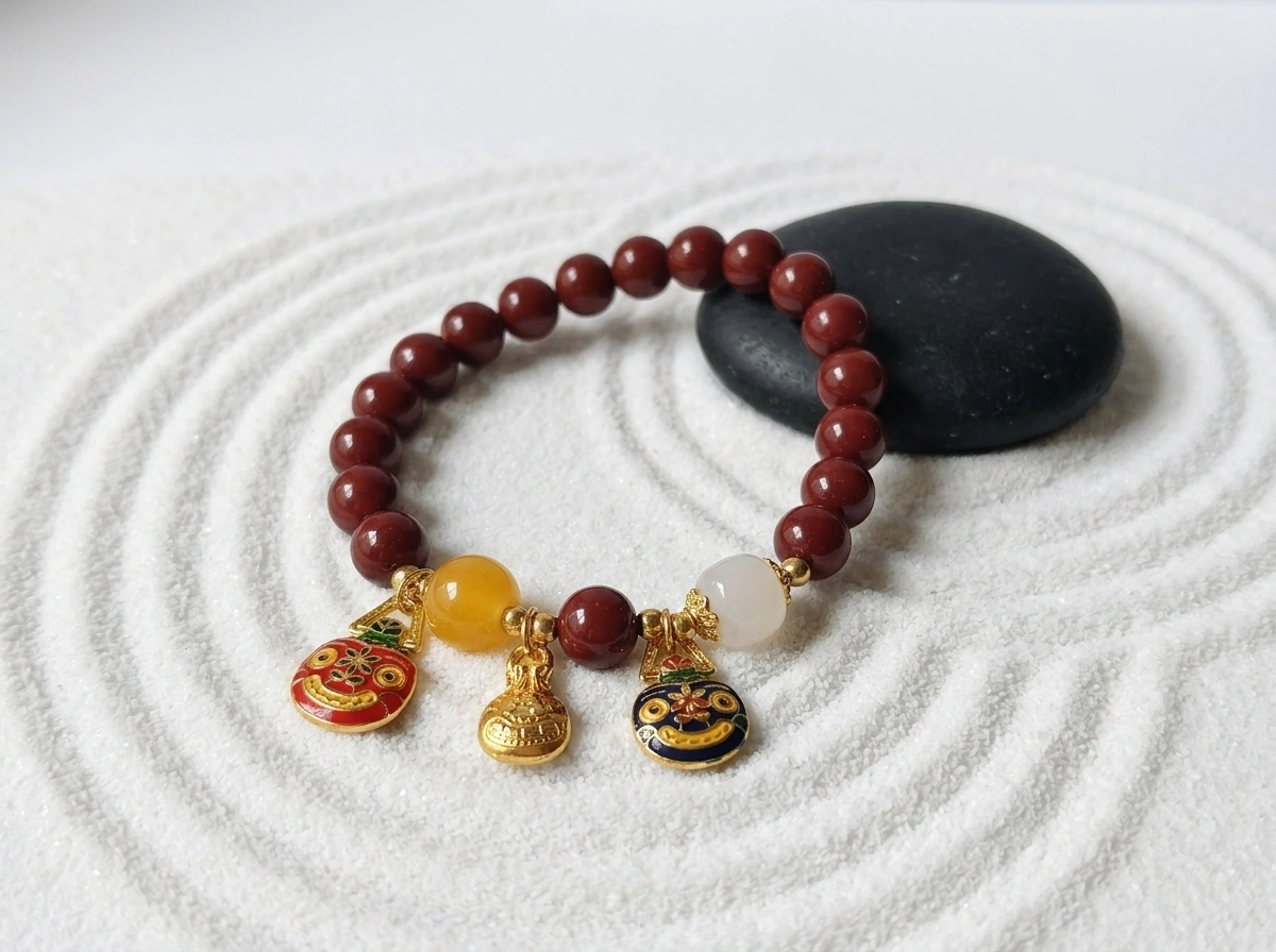 “Treasure Beast” (Tun Jin Shou) – a mythical creature that swallows gold and precious metals, symbolizing endless wealth attraction. Carved from rare Purple-Gold Cinnabar (Zijinsha), known for powerful protection and prosperity energy. Wear as a bracelet to draw in money and good fortune.