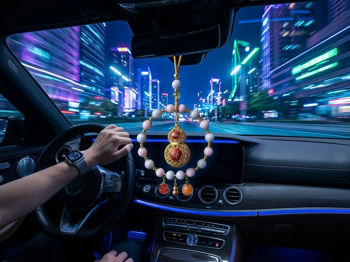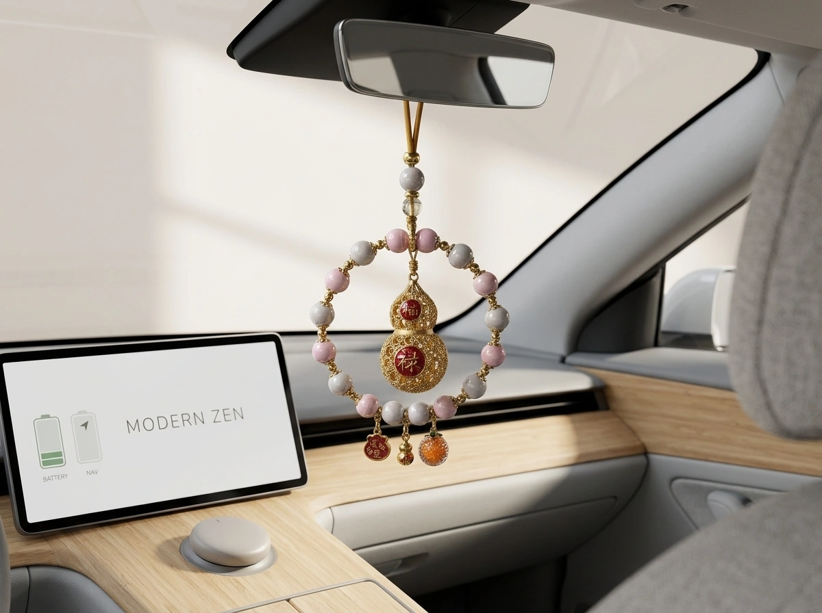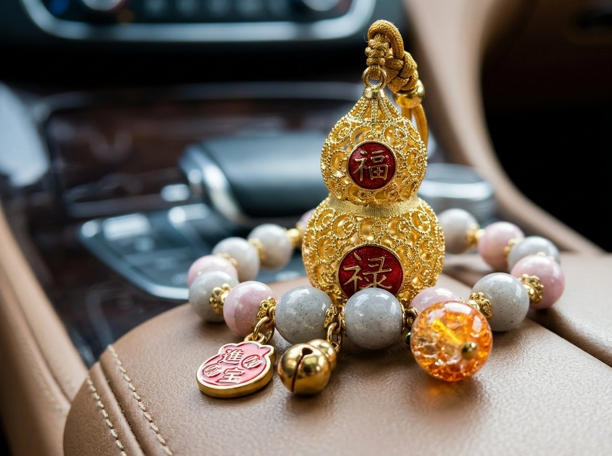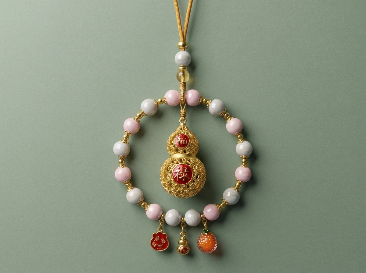 Incense Ash Ceramic Bead & Peace Gourd – Car Rearview Mirror Charm
