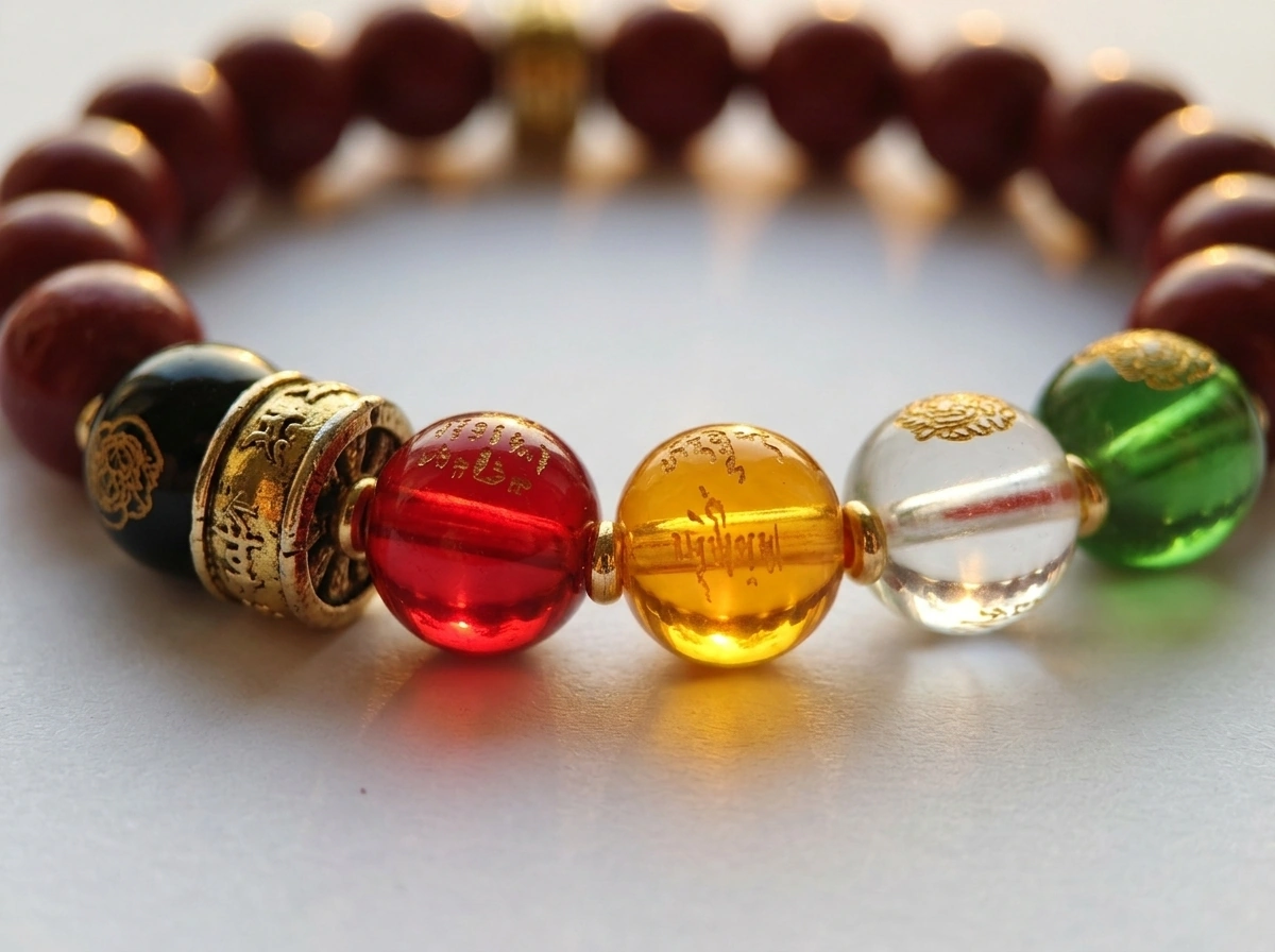 Purple Cinnabar “Five Road Wealth Gods” Rotating Charm Bracelet