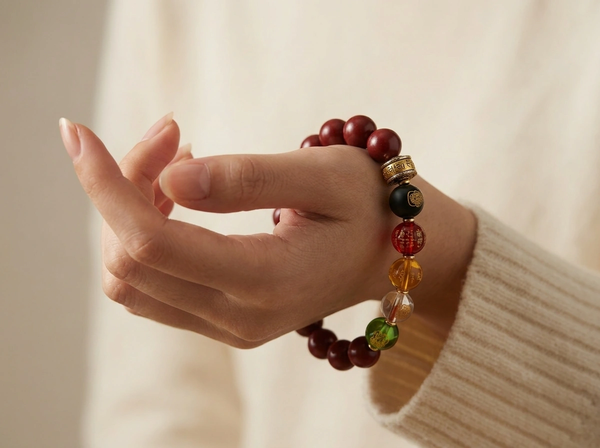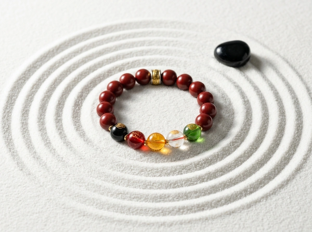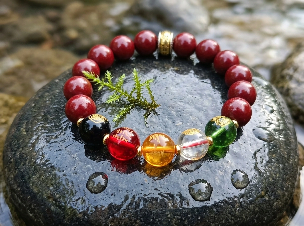 Five Wealth Gods – protectors who bring prosperity from all five directions. The spinning wheel (rotating charm) symbolizes turning luck and continuously attracting fortune. Made with rare Purple-Gold Cinnabar (Zijinsha) for protection and wealth.