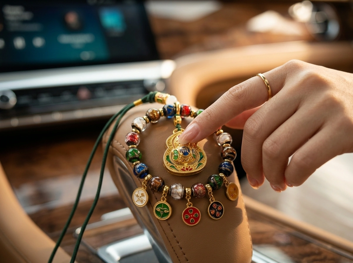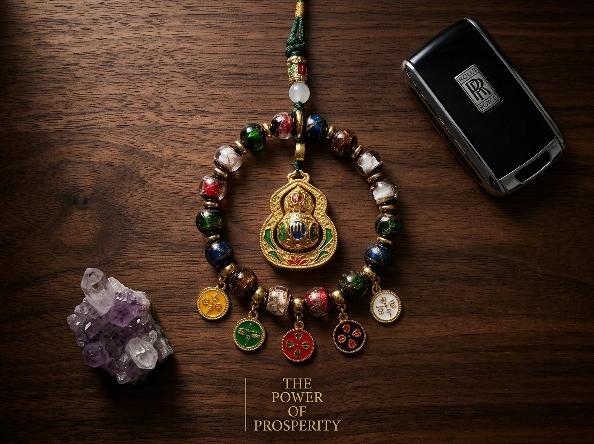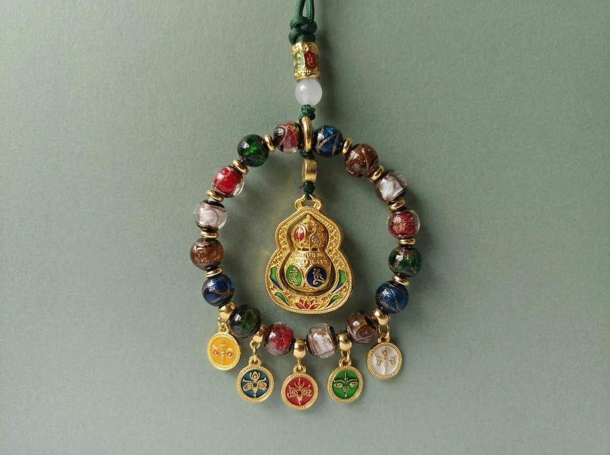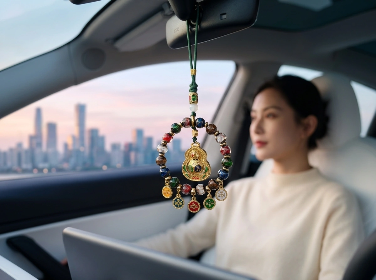 Lucky Gourd (Hulu) – traditional symbol of protection and good fortune. “Turn luck” (Zhuanyun) means changing bad luck to good. Made with incense ash glass (temple ash mixed into glass). Hang in your car to attract positive energy and safe travels.