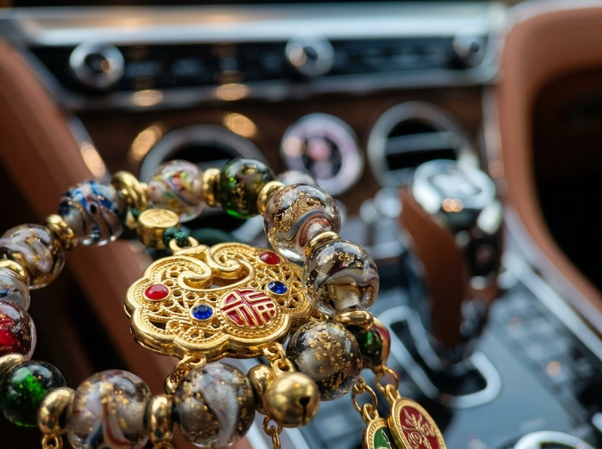 Incense Ash Glazed Glass & Crystal “Fortune Lock” – Car Charm