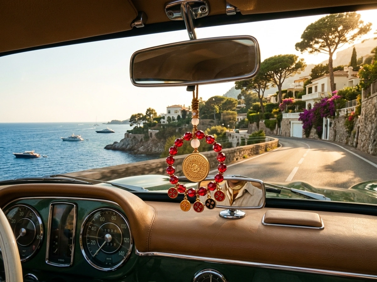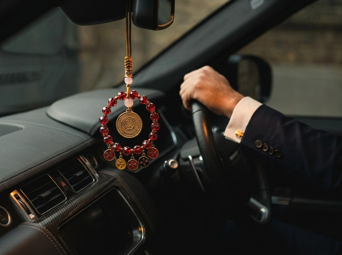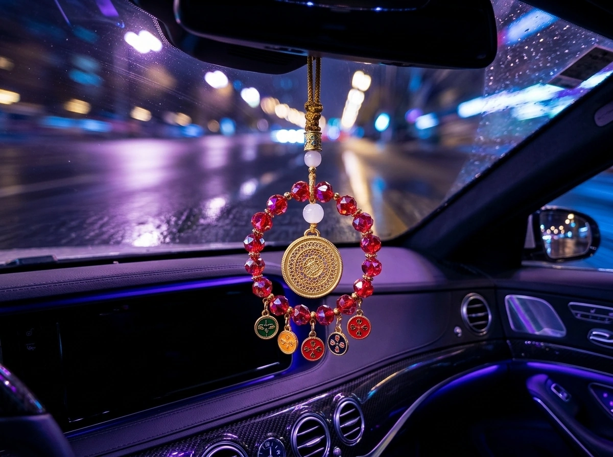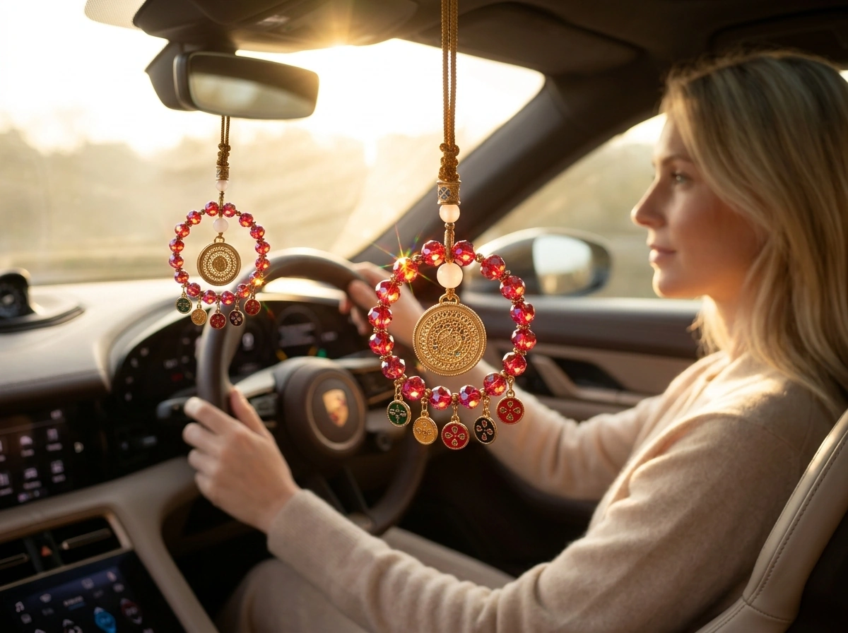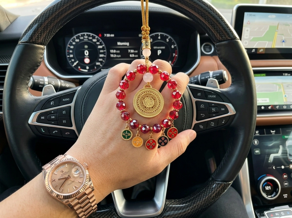 Red Crystal Five Blessings Fullness – Rearview Mirror Pendant