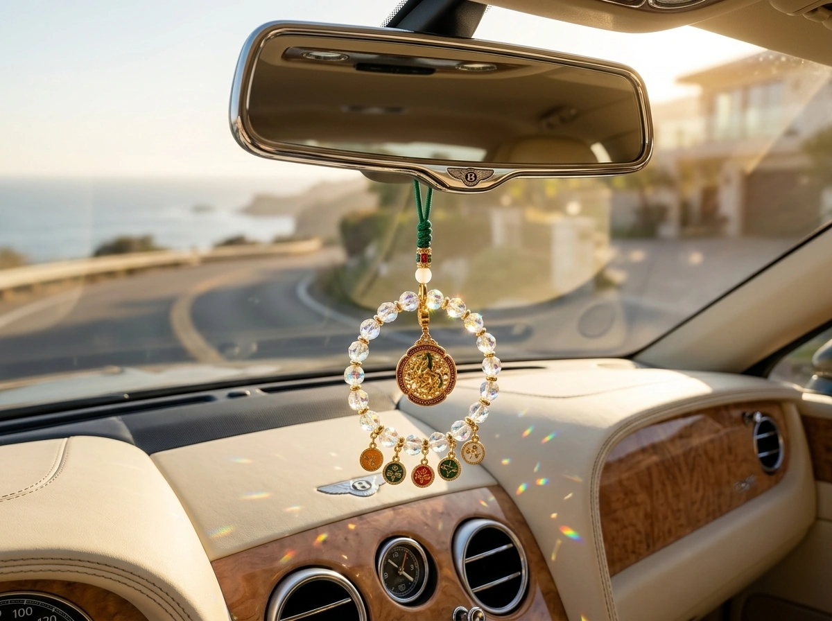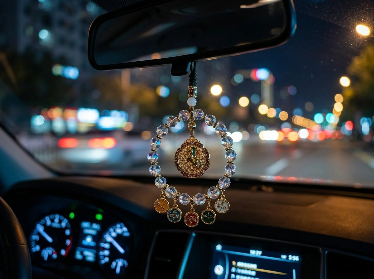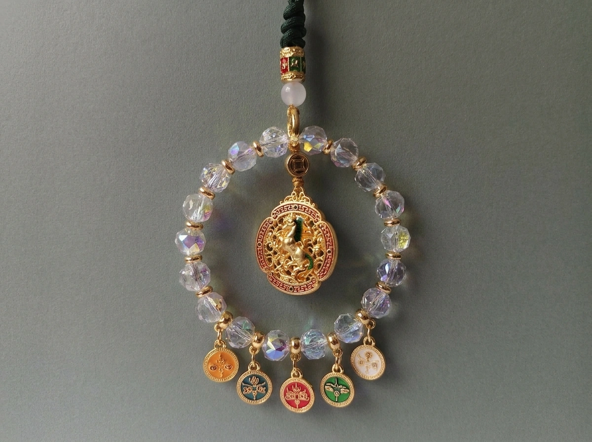 “Ma Dao Cheng Gong” – a Chinese idiom meaning “success the moment the horse arrives,” i.e., instant success and swift victory. The horse represents speed, strength, and achievement. Made with iridescent crystal. Hang in your car to attract fast success and smooth progress on every journey.