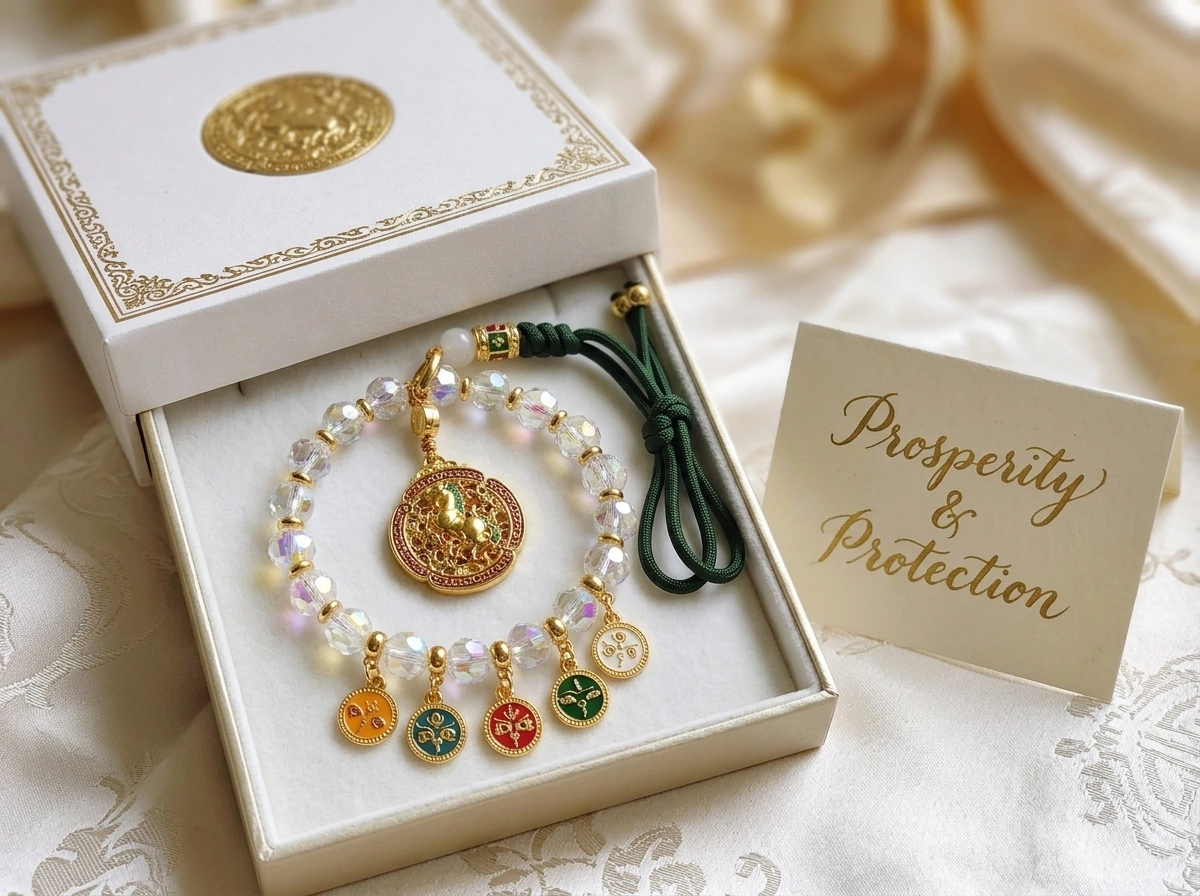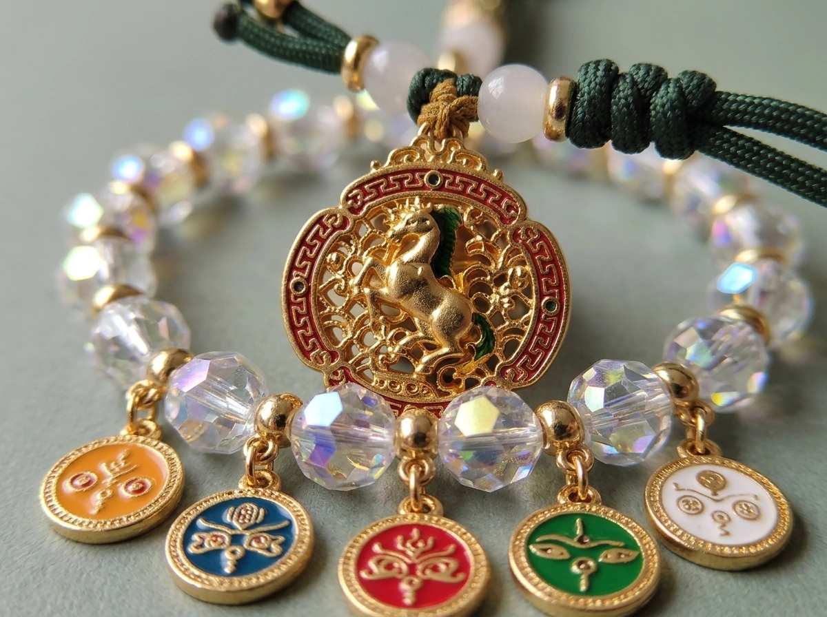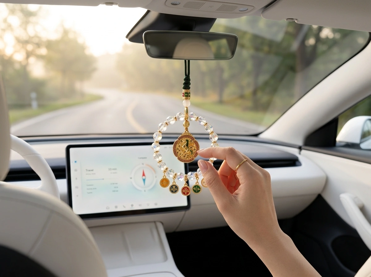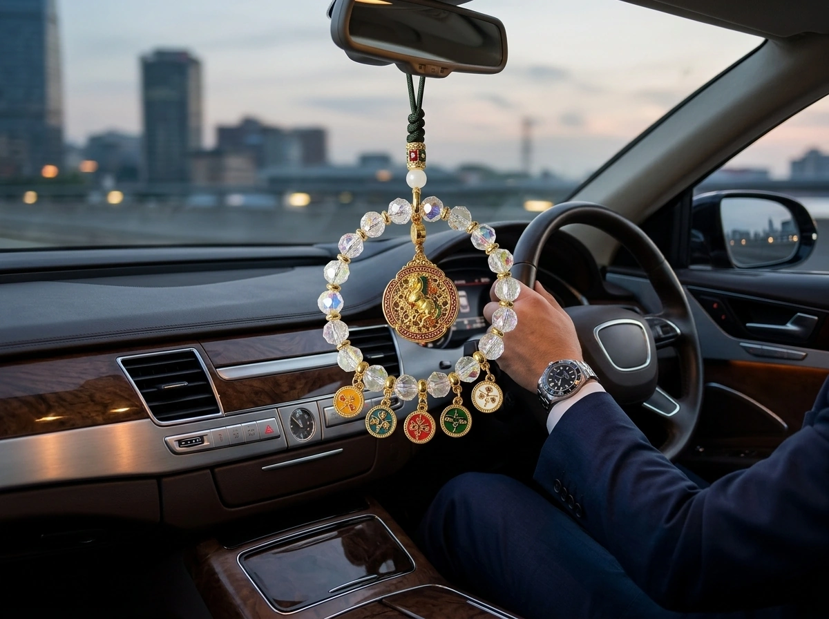 “Ma Dao Cheng Gong” – a Chinese idiom meaning “success the moment the horse arrives,” i.e., instant success and swift victory. The horse represents speed, strength, and achievement. Made with iridescent crystal. Hang in your car to attract fast success and smooth progress on every journey.