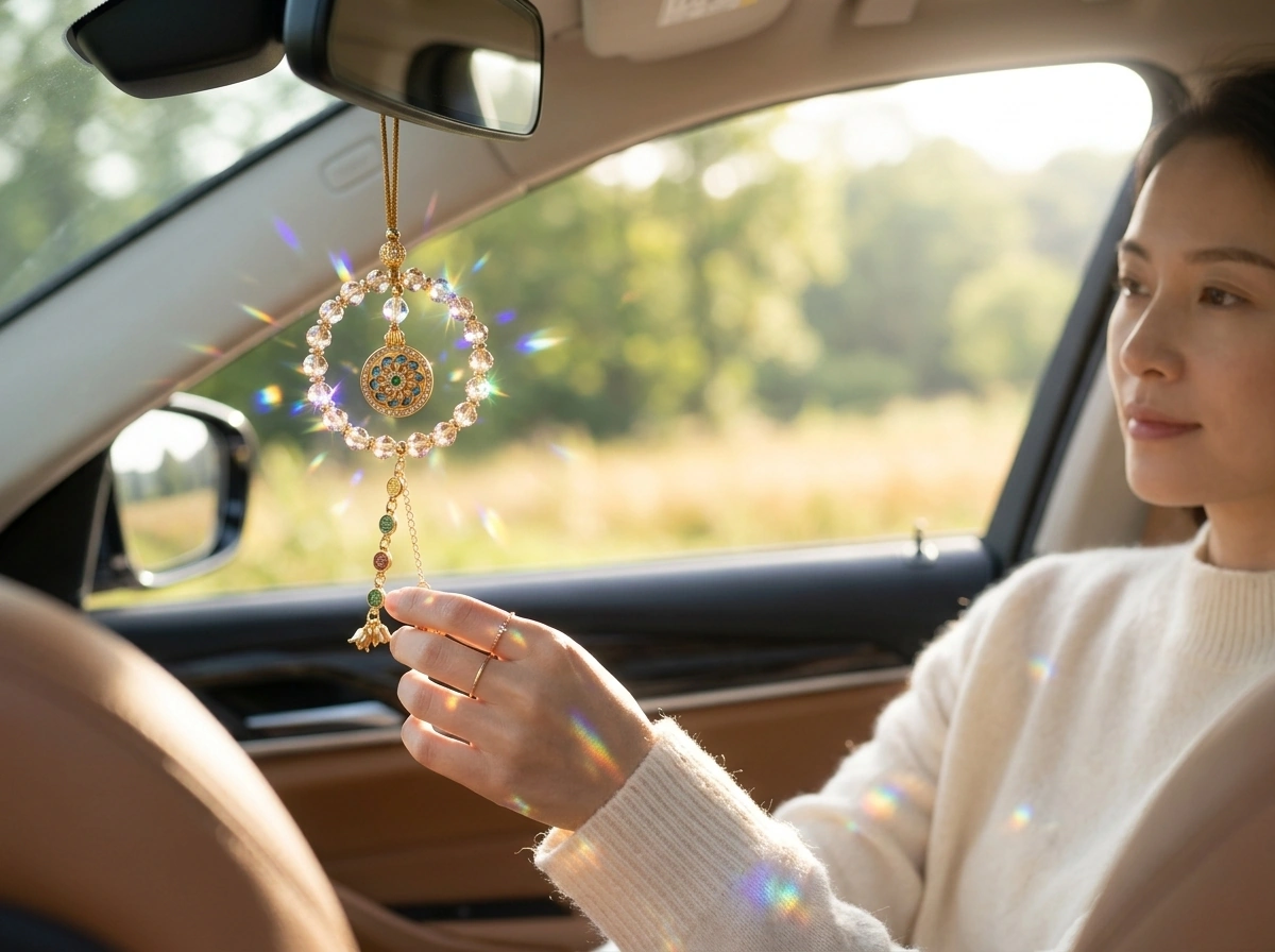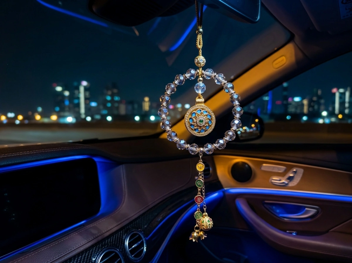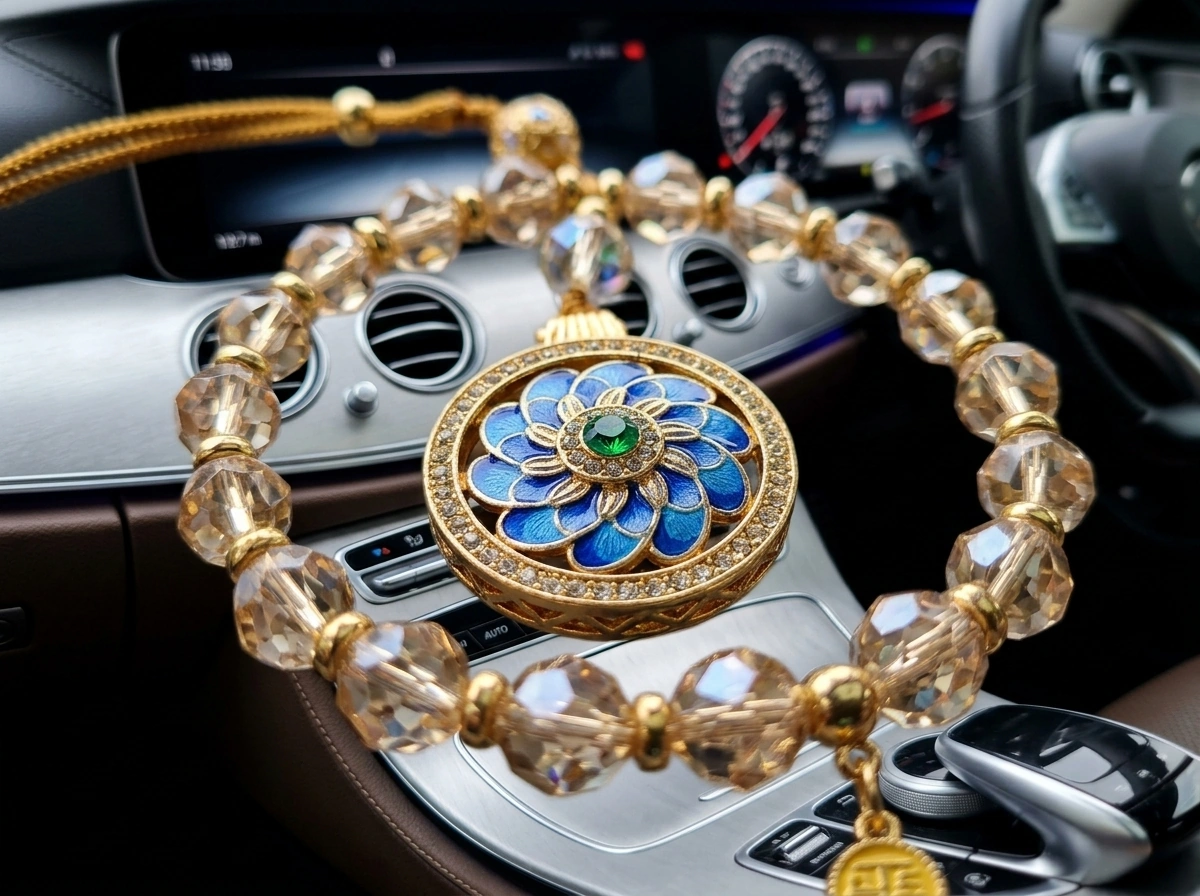 Shimmering Blue Lotus Spinning Wheel – Car Hanging Ornament