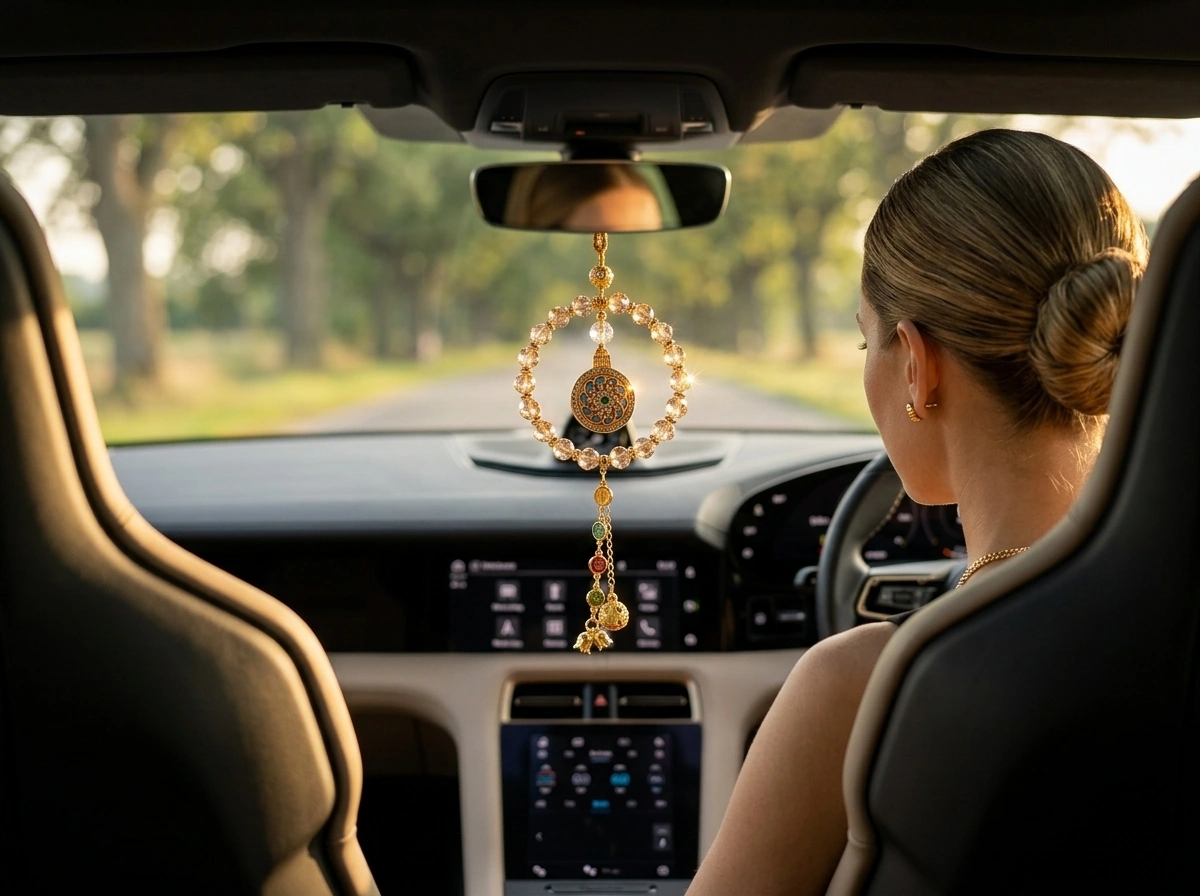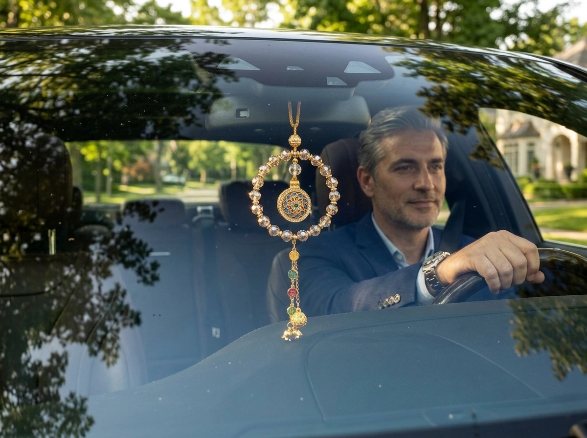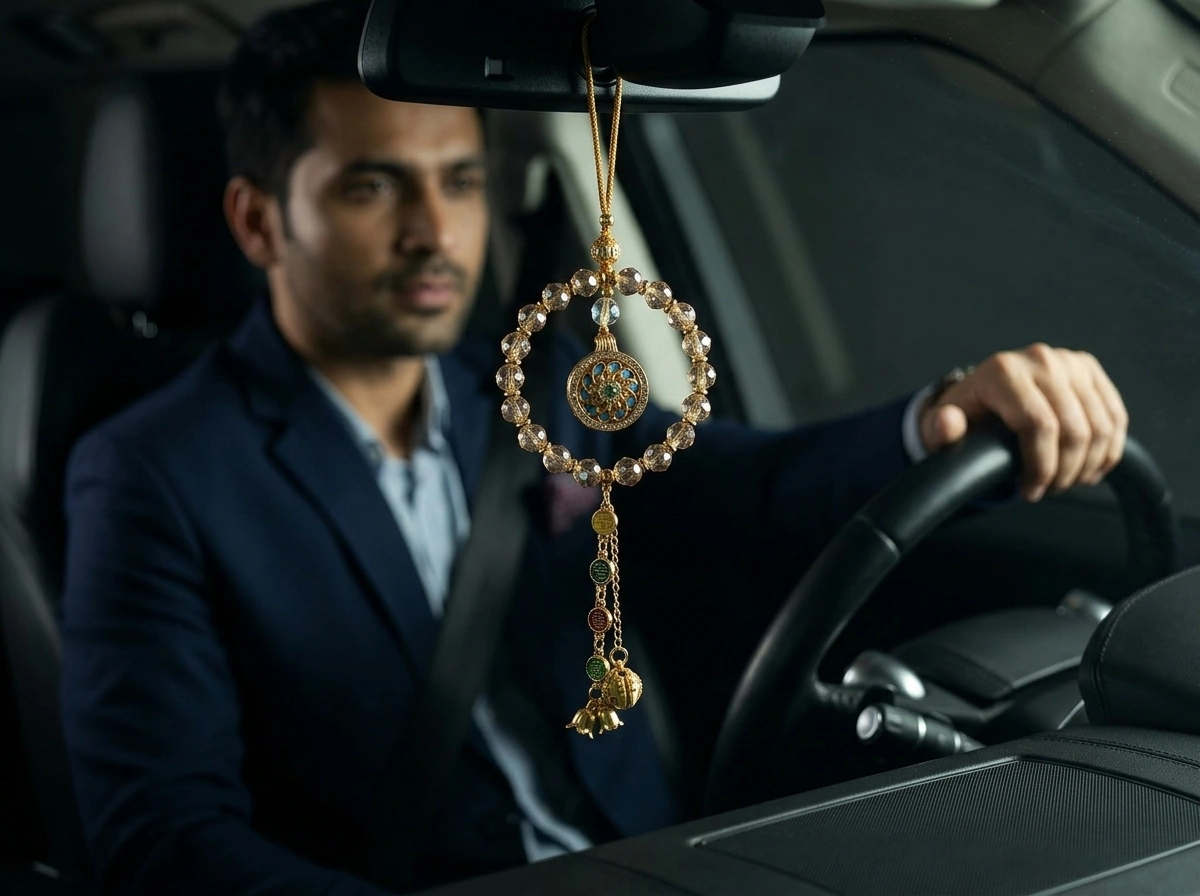 Shimmering Blue Lotus Spinning Wheel – Car Hanging Ornament