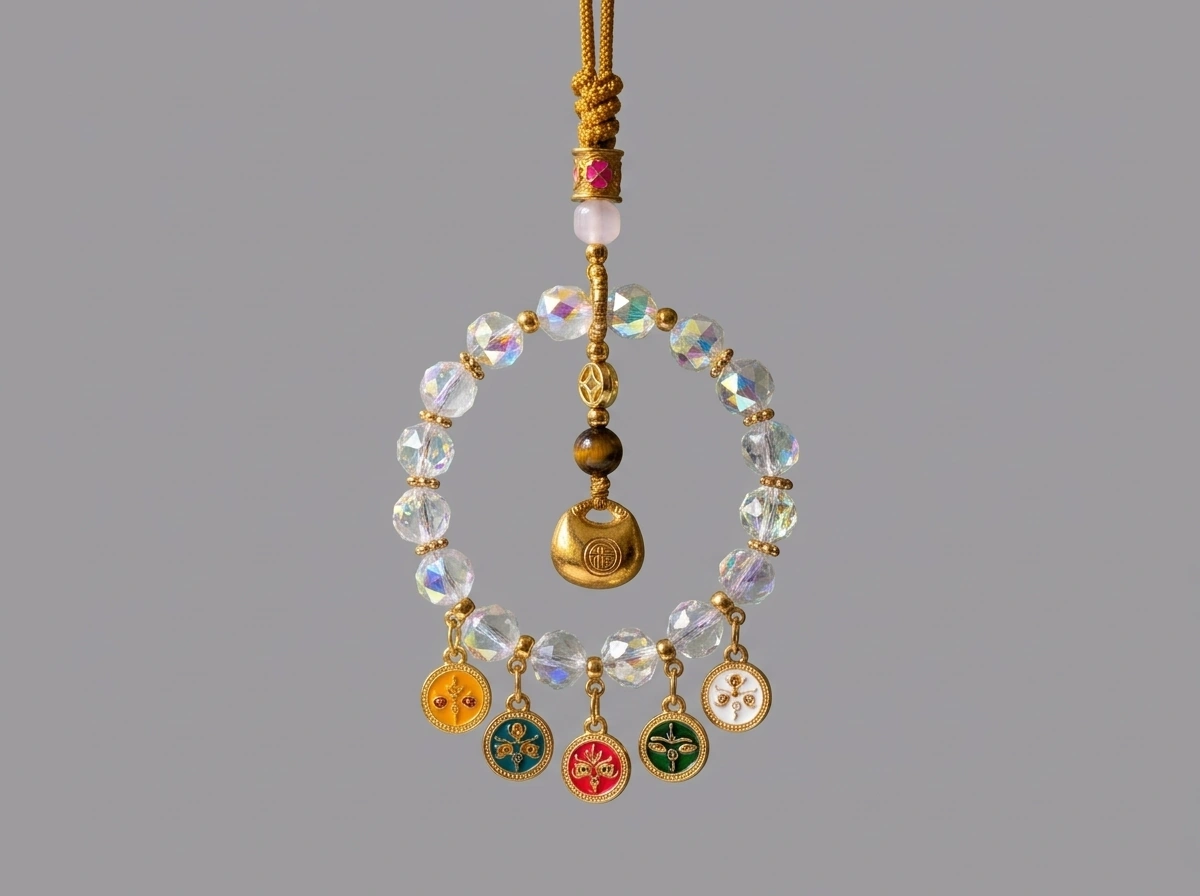 “Zhao Cai Jin Bao” (Bring Wealth and Treasure) – a classic Chinese prosperity blessing. Made with iridescent crystal that shimmers in rainbow colors. Hang in your car to attract money, luck, and success on every road.