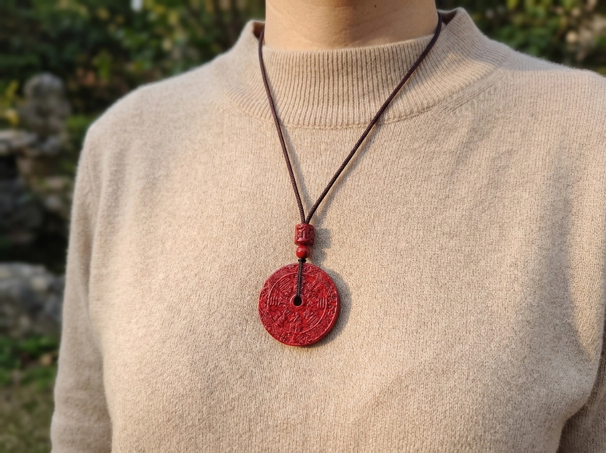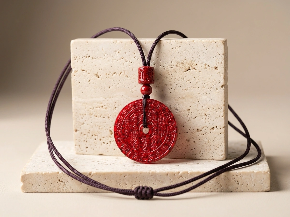 Raw Cinnabar Shan Gui Talisman Coin Pendant