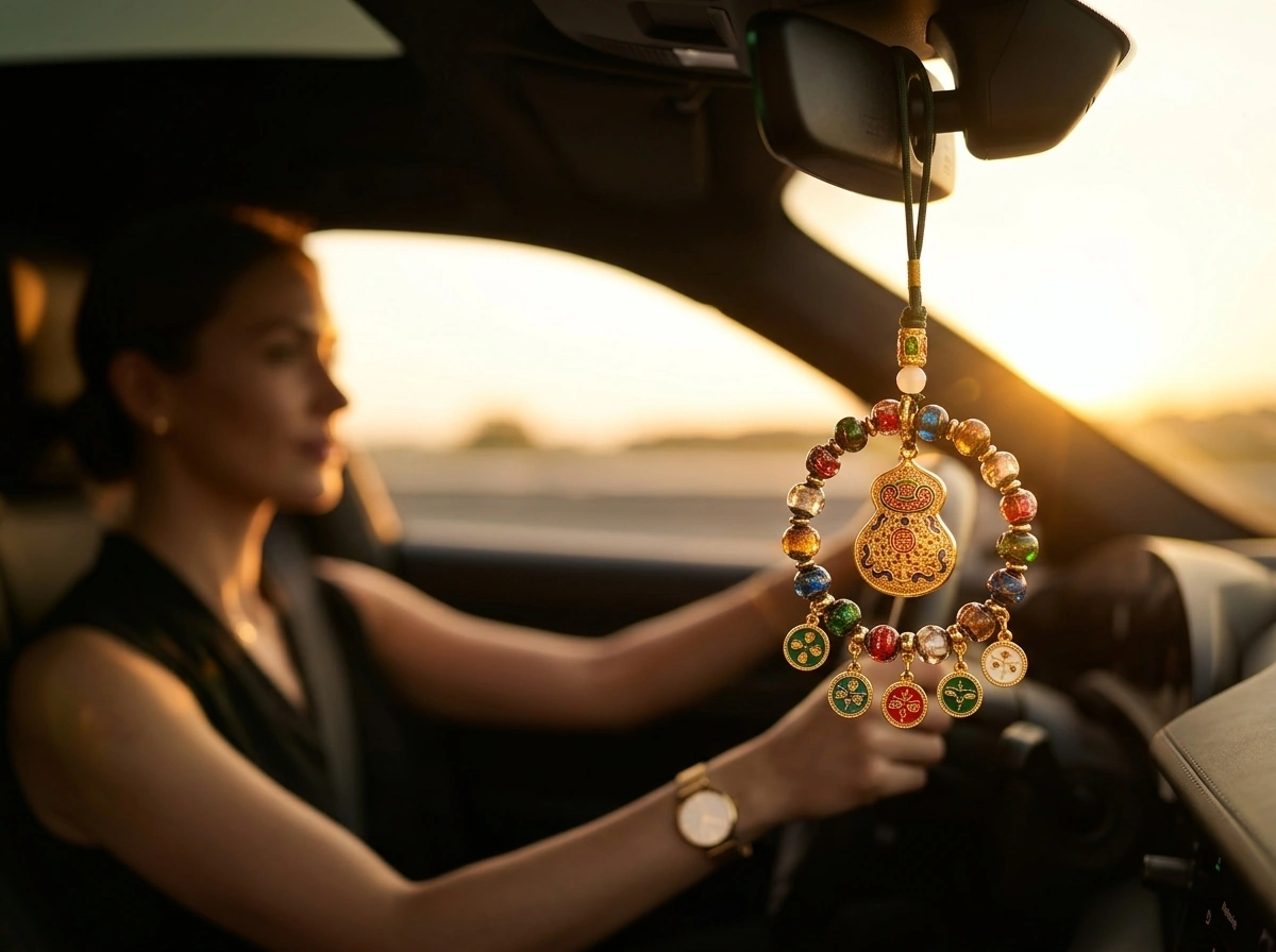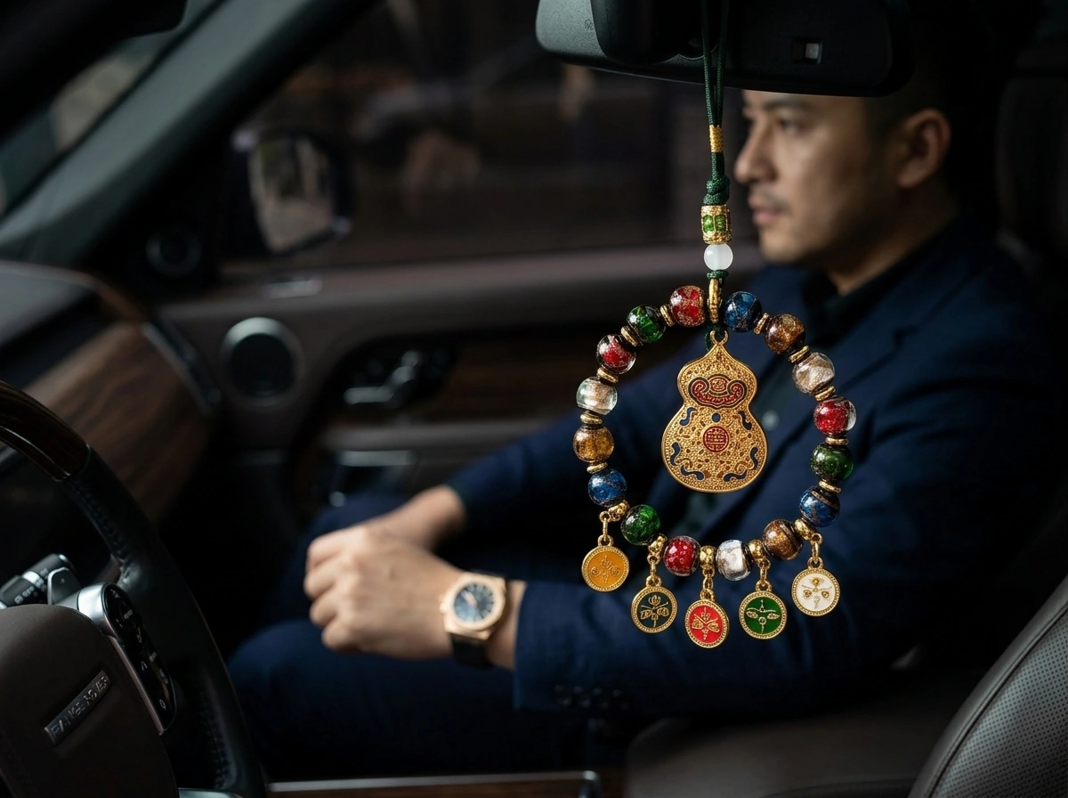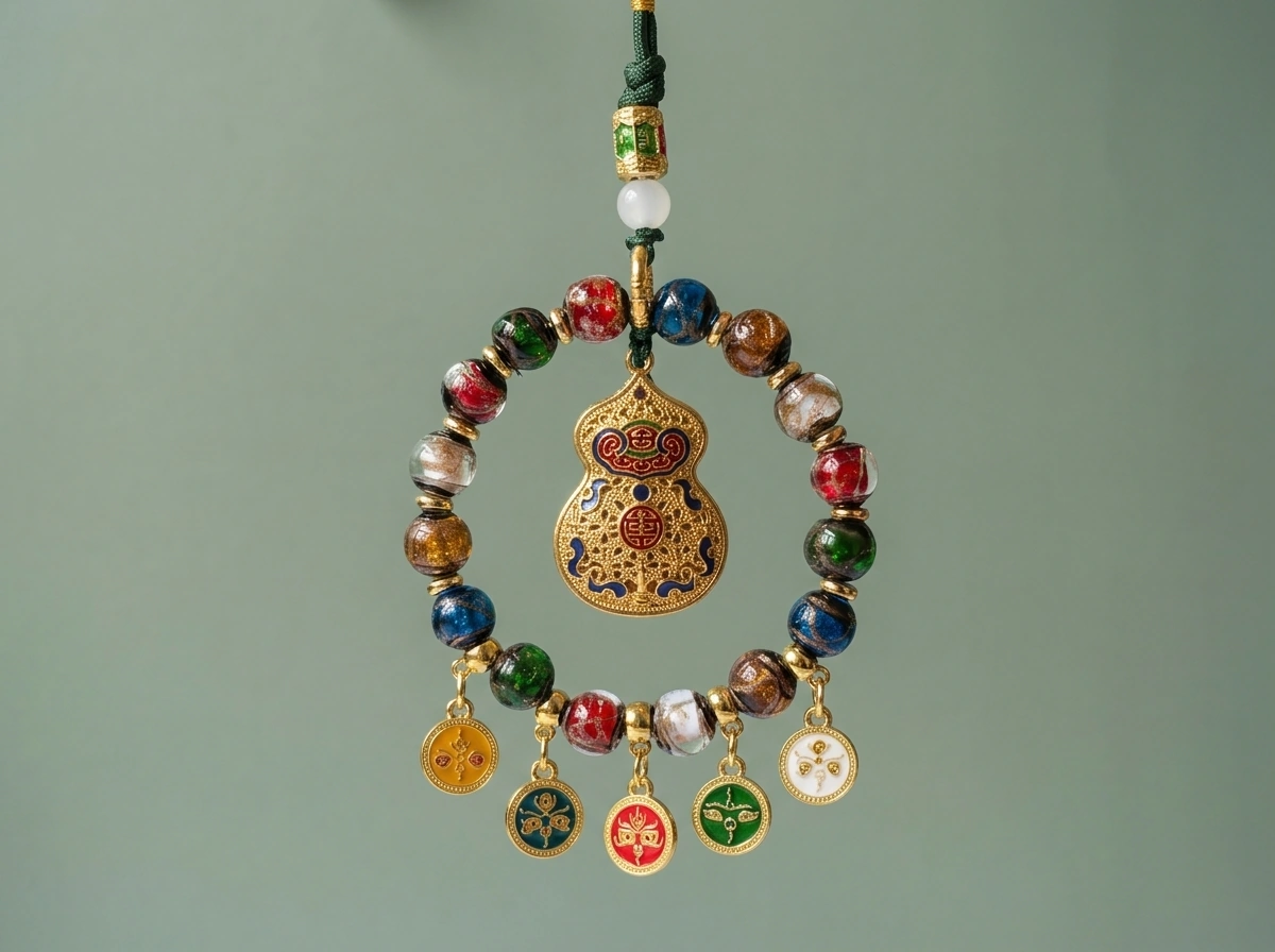 Incense Ash Glass Auspicious Filigree Gourd – Car Charm